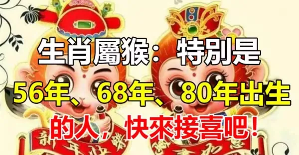 生肖屬猴:特別是「56年、68年、80年」出生的人,快來接喜吧!