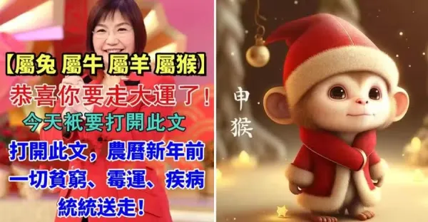 生肖【屬兔 屬牛 屬羊 屬猴】恭喜你要走大運了!打開此文,農曆新年前一切貧窮、霉運、疾病統統送走!