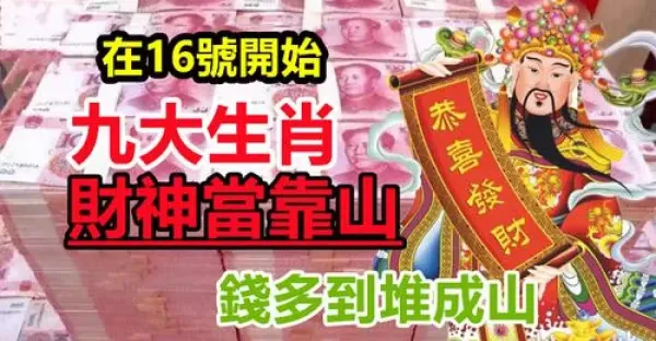 在16號開始有財神當靠山,九大生肖錢多到堆成山