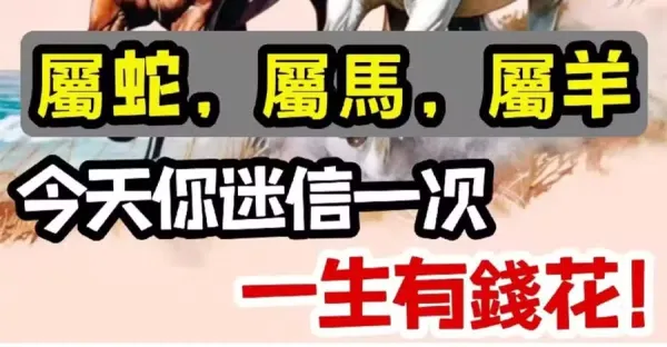 家裡有生肖「屬蛇,屬馬,屬羊」的,今天你就迷信一次,一生有錢花!