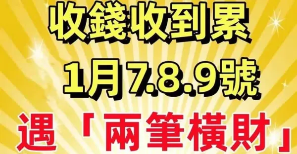 收錢收到累!1月7.8.9號,遇「兩筆橫財」日子一順百順的生肖!
