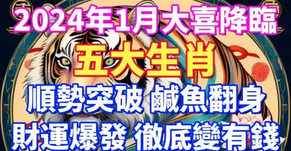 2024年1月大喜降臨,順勢突破,咸魚翻身的生肖,財運爆發,徹底變有錢
