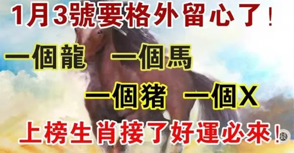1月3號要格外留心了,一個龍,一個馬,一個豬,一個X,接了好運必來