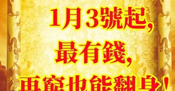 1月3號千萬橫財,財運相當好的三大生肖