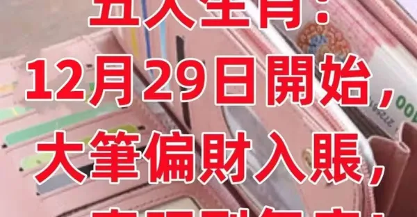 12月29日開始,大筆偏財入賬,一直旺到年底的生肖!