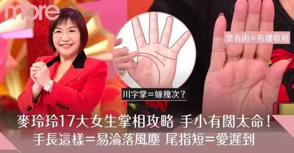 掌紋分析|麥玲玲揭17大女掌紋定富貴 :手小有少奶命 三峰起=有樓收租
