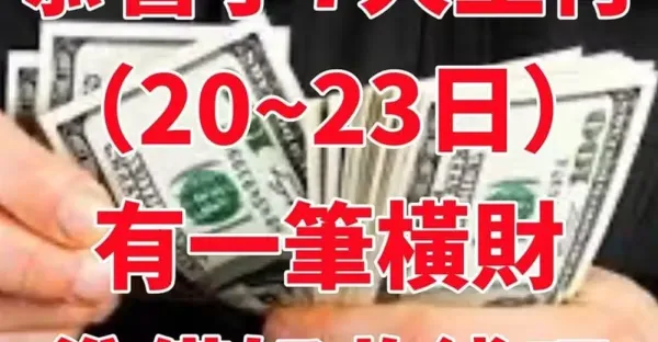 恭喜了7大生肖,在未來三天(20~23日)即將有一筆橫財!準備好收錢吧!