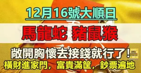 12月16.17.18號有貴人、有橫財、有偏財的生肖