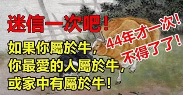 如果你屬於牛,你最愛的人屬於牛,或家中有屬於牛,44年才一次,不得了了