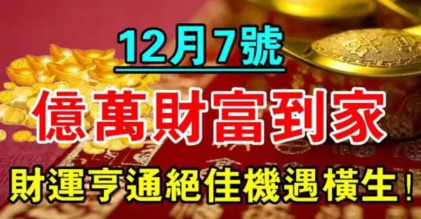 億萬財富到家,12月7號開始財運亨通機遇不可錯過的生肖