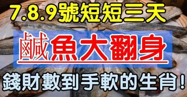 鹹魚大翻身,12月7.8.9號短短三天錢財數到手軟的生肖