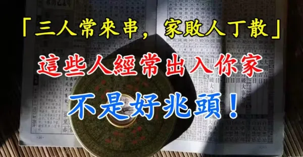 「三人常來串,家敗人丁散」,這些人經常出入你家,不是好兆頭!