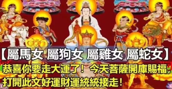 生肖【屬馬女 屬狗女 屬雞女 屬蛇女】恭喜你要走大運了!今天菩薩開庫賜福,打開此文好運財運統統接走!