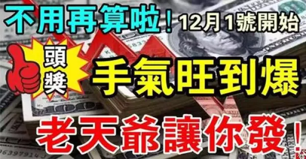 不用再算啦,12月1號開始手氣旺到爆的生肖,老天爺讓你發