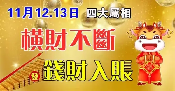 11月12號開始賺得千萬橫財,財祿豐盈的四生肖,財富一路飆漲