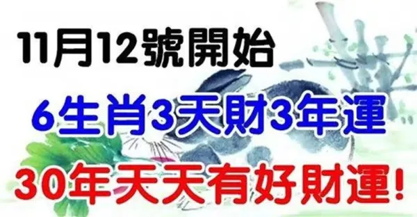 11月12號開始三天內財發不停,三年好運不斷,30年財富無數的生肖