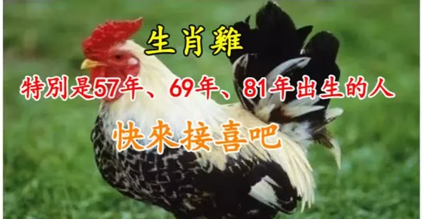 生肖雞:特別是57年、69年、81年出生的人,快來接喜吧