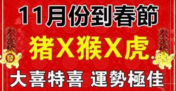 11月到春節大喜特喜,運勢極佳的生肖快來接