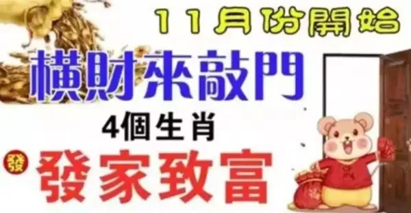 十一月份開始,財氣超旺,全家富貴的四個屬相