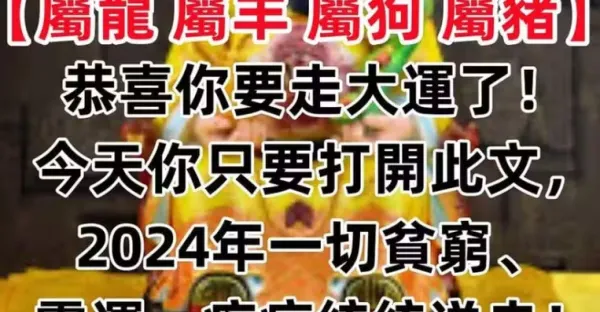 生肖【屬龍 屬羊 屬狗 屬豬】恭喜你要走大運了!今天你只要打開此文,2024年一切貧窮、霉運、疾病統統送走!!!