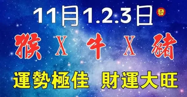11月1.2.3日(猴X牛X豬)運勢極佳,財運大旺