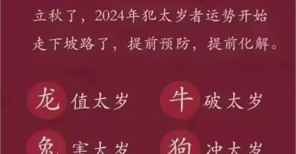 2024年犯太歲4個屬相一覽表,2024年哪些生肖犯太歲
