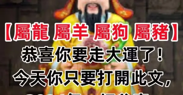 【屬龍 屬羊 屬狗 屬豬】恭喜你要走大運了!今天你只要打開此文,2024年一切貧窮、霉運、疾病統統送走!