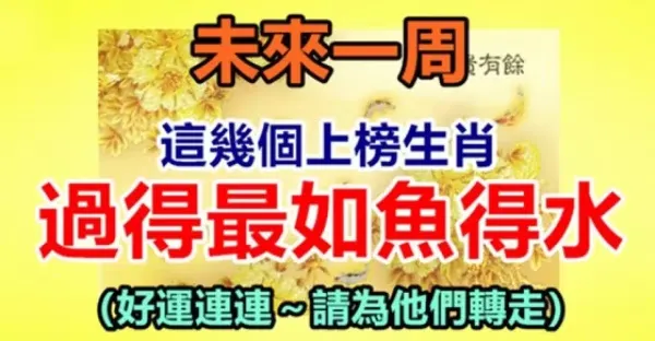 未來一周過得最如魚得水的生肖