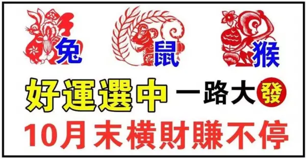 10月末橫財賺不停(兔鼠猴)被好運選中,一路大發