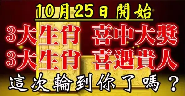 10月25日開始,六大生肖喜中大獎,喜遇貴人快來接