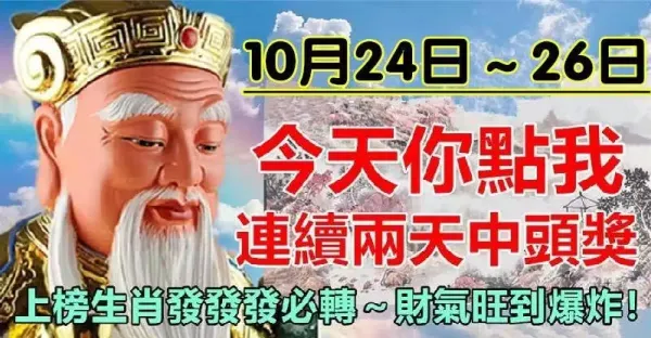 10月24,25,26號【馬猴虎】必有橫財