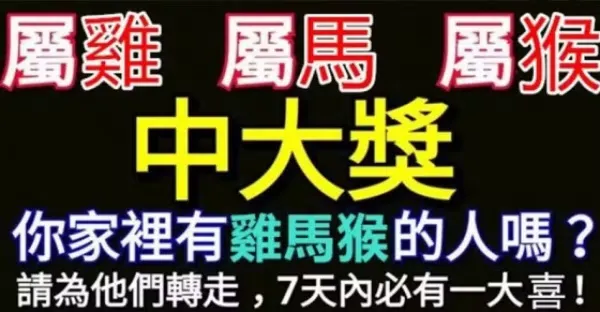 屬雞牛猴的人,七天內必有一大喜~