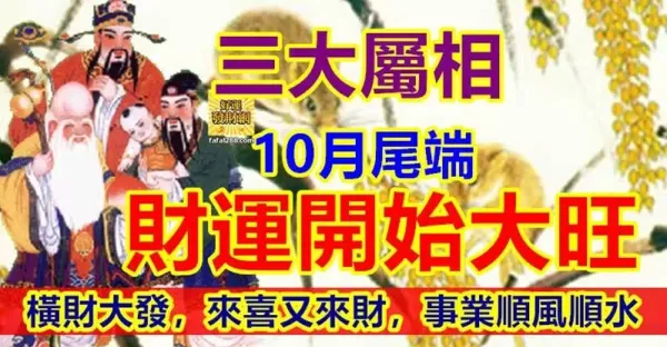 10月尾端財運開始大旺,橫財大發,來喜又來財,三生肖事業順風順水