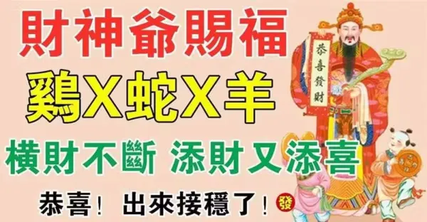 財神爺賜福,橫財不斷,添財又添喜的生肖