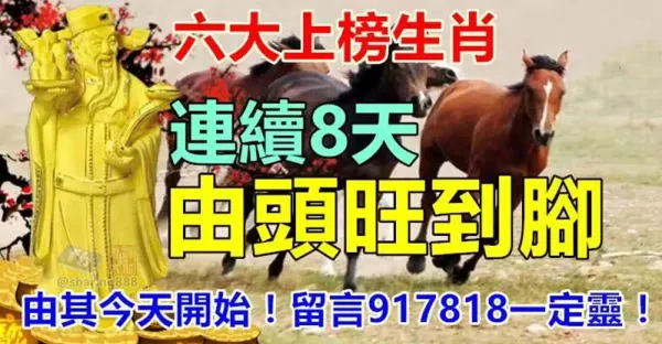 六大上榜生肖,連續8天由頭旺到腳,由其今天開始