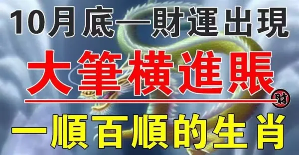 10月底大筆橫財進賬,一順百順的生肖