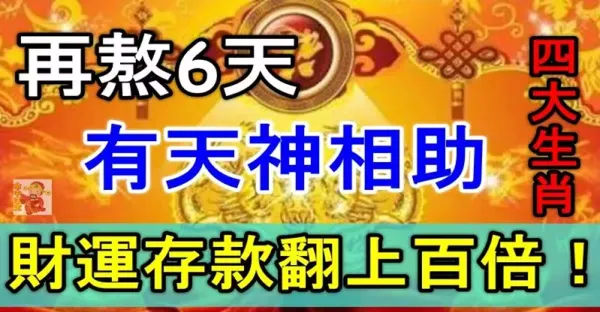 再熬六天有天神相助,四大生肖財運存款翻上百倍!