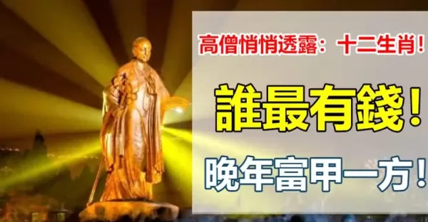 高僧悄悄透露:十二生肖!誰最有錢!晚年富甲一方!