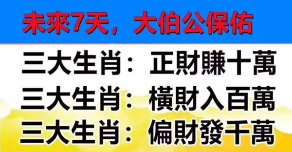 未來七天大伯公保佑,有正財橫財偏財的生肖