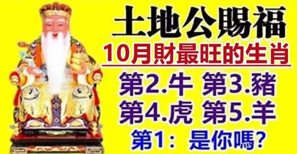 土地公賜福,10月財最旺的生肖
