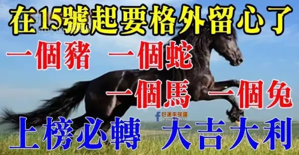 在15號起要格外留心了,一個豬,一個蛇,一個馬,一個兔,大吉大利