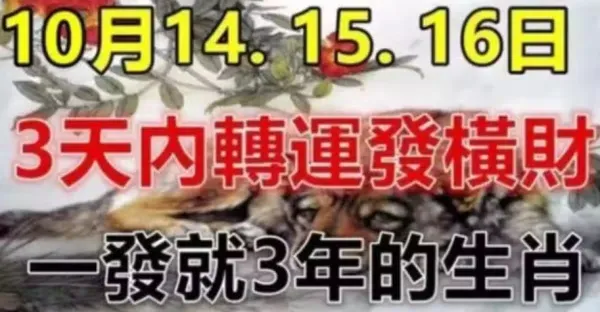 【10月14.15.16日】三天內轉運發橫財的生肖。