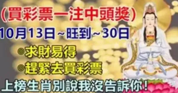 10月13日旺到30日,買彩票一注中頭獎的生肖