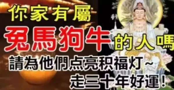 觀音菩薩賜福:家裡有生肖屬「兔馬狗牛」的人嗎?請為他們點亮祝福燈,走三十年好運!