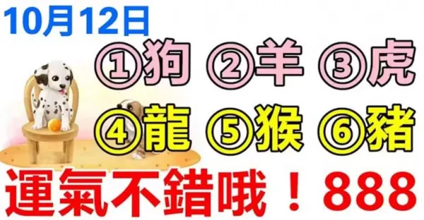 10月12日生肖運勢屬_狗、羊、虎大吉