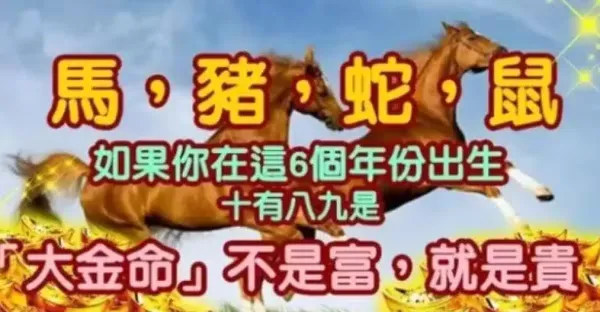 馬,豬,蛇,鼠。如果你在這6個年份出生,十有八九是「大金命」!
