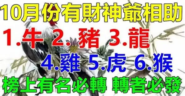10月11日開始,遠離霉運,可發大財的6大生肖。