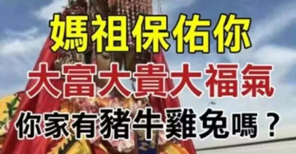 有此生肖全家沾光!媽祖保佑你,大富大貴大福氣! 家有豬牛雞兔嗎?
