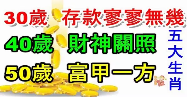 30歲存款寥寥無幾,40歲財神關照,50歲富甲一方的五大生肖