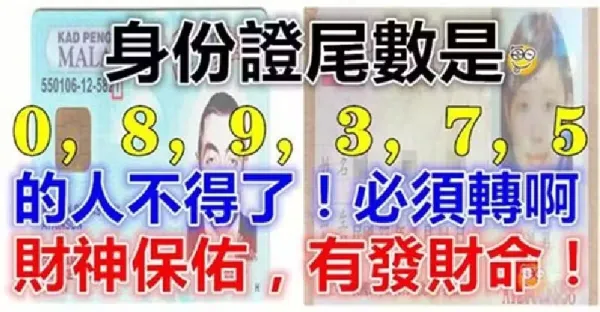 不得了!身份證尾數是「0 8 9 3 7 5」的人有好運降臨 財神保佑「有發財命」